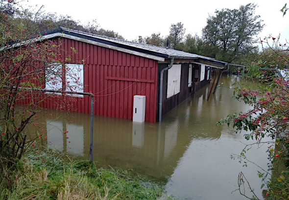 Bei der Jahrhundertsturmflut an der Ostsee in der vergangenen Woche hat es unser EC-Ferienlager in Karlsminde, etwa 15 Kilometer nordöstlich von Eckernförde gelegen und über den gleichnamigen Campingplatz zu erreichen, im wahrsten Sinne „heft ig getroffen“. Auf dem Gelände gibt es acht Bun- galows für jeweils sieben Personen und das Haupthaus, die zum Zeitpunkt dieser Mitteilung immer noch unter Wasser stehen. Die Brühe steht teilweise so hoch, dass sie Brusthöhe erreicht. Auch alle weiteren Bereiche des Ferienlagers sind von der Flut betroffen: die Großküche, die Vorratskammer, das separate Sanitärgebäude mit den Duschen – von der Heizung, der Elektrik und dem Gas-Tank ganz zu schweigen. Für uns alle sind die Bilder schockierend, sie machen uns fassungslos. Der ge- samte Schaden und das Ausmaß der Katastrophe sind – wie in vielen anderen Bereichen entlang der Ostseeküste – noch nicht absehbar. Wir sind zurzeit mit Hochdruck dabei, die Lage zu analysieren und die nächsten Schritte zu koordinieren. Selbstverständlich informieren wir weiter, sobald ein ge- nauerer Überblick über die Schäden und den Aufwand für den Wiederaufbau vorliegt.